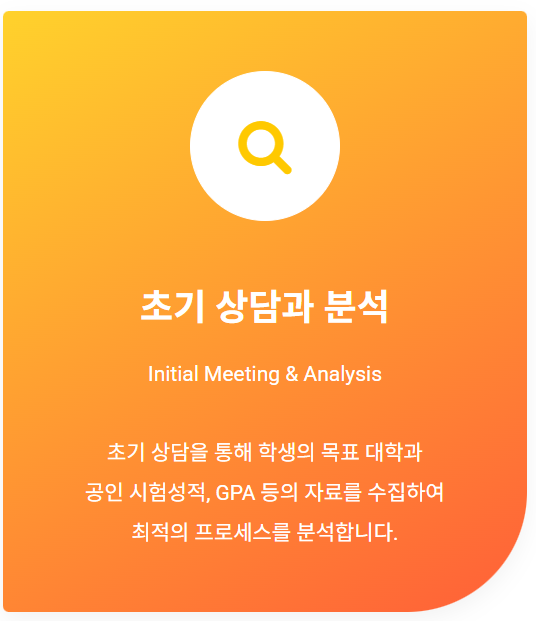 학생에게 더욱 유리한 입시를 위해 체게적이고 전략적인 EC를 추천하고 AP수업을 포함한 과목 선택 및 컨설팅 플랜을 제공합니다.