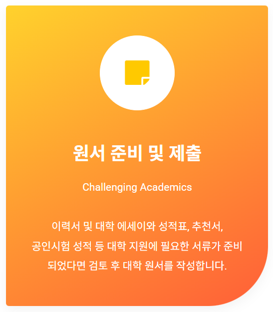 입학사정관들에게 학생 본인만의 특색있는 경험이 보여질 수 있도록 대학입시 전문 에세이스트가 에세이 작성을 가이드 합니다.